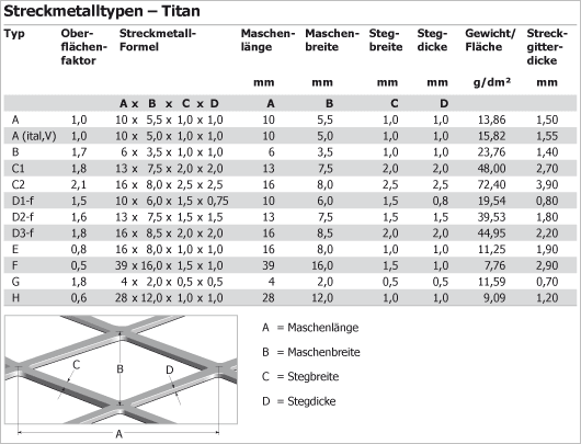JTR-TECHNOLOGY bietet standardmäßig folgende Titan-Streckmetalltypen an: