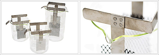 Für alle gängigen Becherglas-Größen als platinierte oder mischoxid-aktivierte Titananoden für Laborversuche und Kleinteil-Beschichtungen. Standardmäßig werden die Becherglas-Anoden in folgenden Größen angeboten: 0,5 / 1,0 / 2,0 / 3,0 / 5,0 Liter Becherglasvolumen.